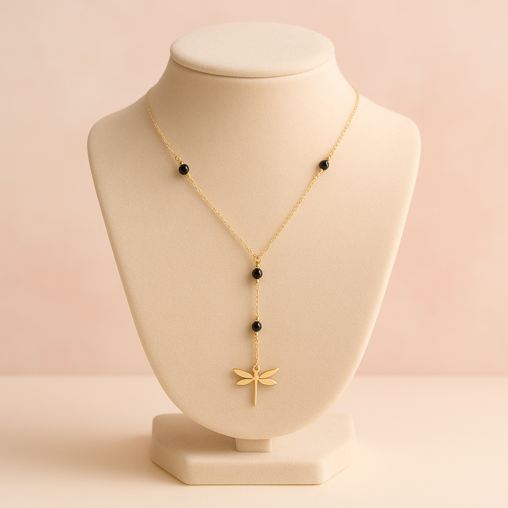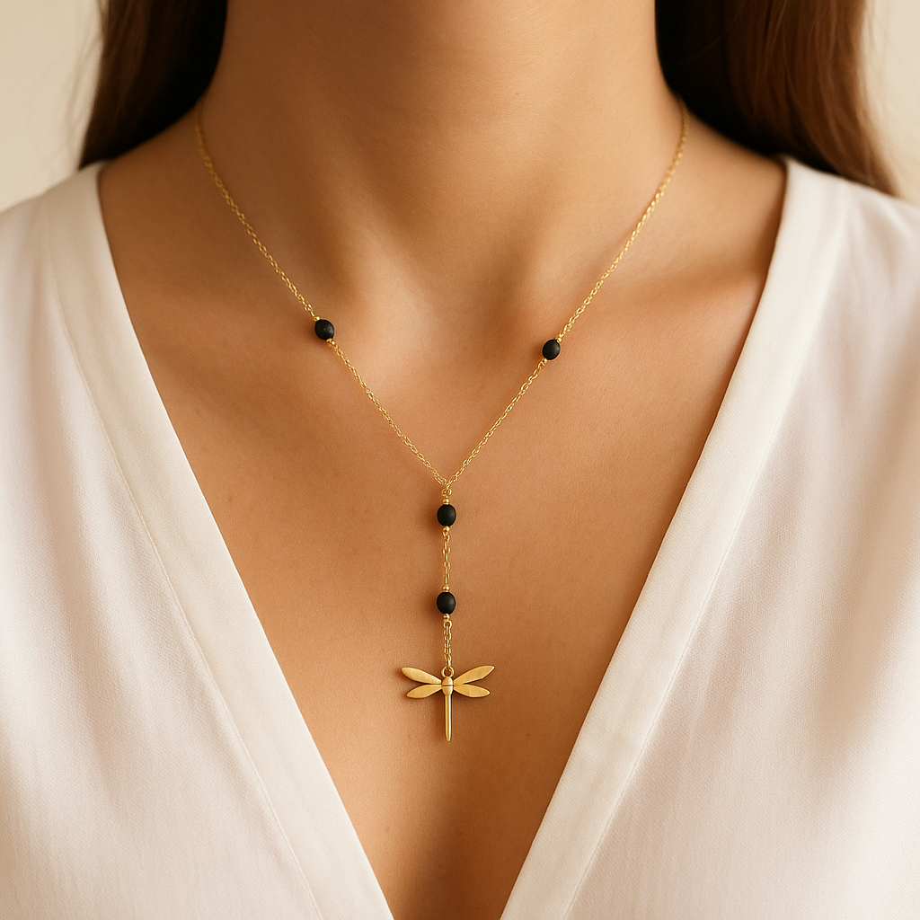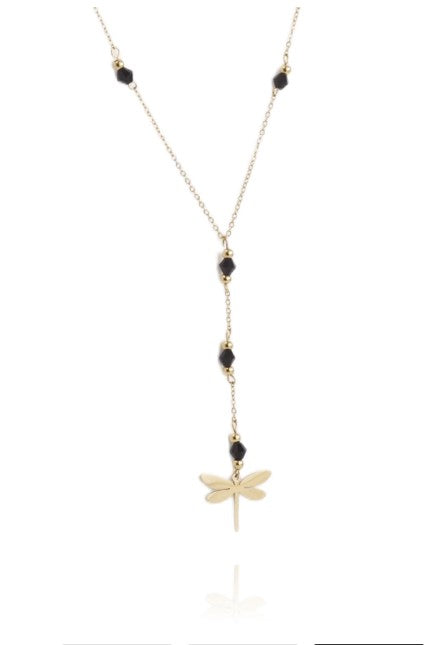 Colgante Libélula Dorada con Piedras Negras ·