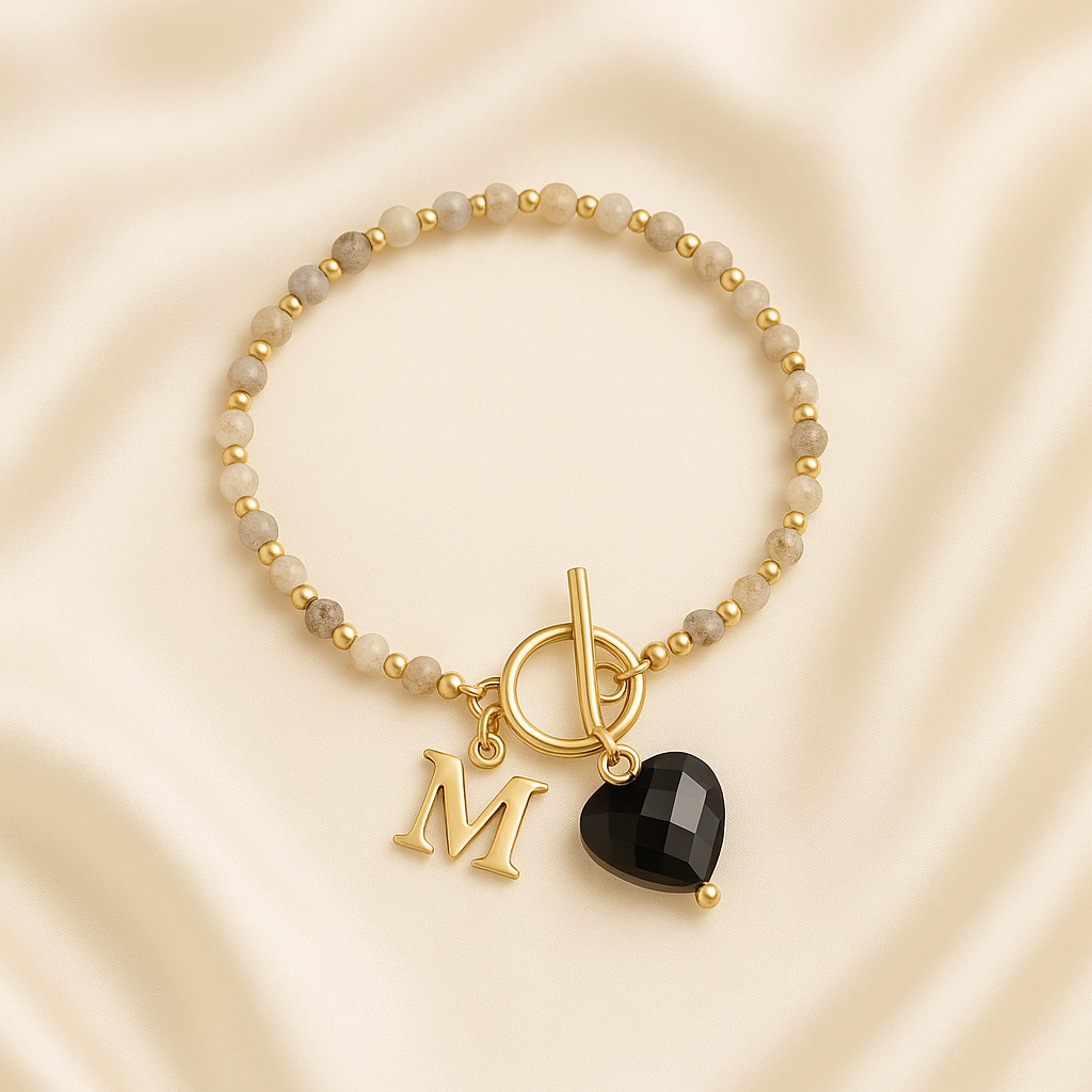 Pulsera de Piedras Naturales con Inicial y Corazón · Ohanna